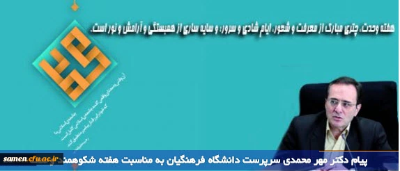 امتیاز دهید : پیام دکتر مهر محمدی سرپرست دانشگاه فرهنگیان به مناسبت هفته شکوهمند وحدت یکشنبه 6 دی 1394 ساعت 13:13