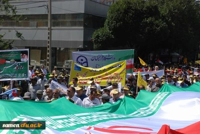 حضور کارکنان و دانشجویان دانشگاه فرهنگیان واحد ثامن الحجج (ع) در مراسم راهپیمایی روز قدس