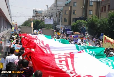 حضور اساتید ، کارکنان و دانشجویان دانشگاه فرهنگیان واحد ثامن الحجج (ع) در مراسم راهپیمایی روز قدس