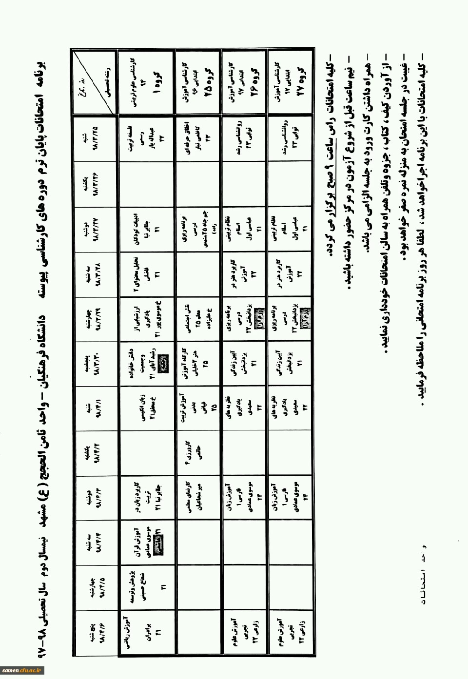 برنامه امتحانات پایان نیمسال دوم سال تحصیلی 97-98