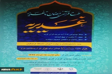 امتیاز دهید : طرح فرهنگی قرآنی رمضان تا غدیر ویژه دانشجو معلمان و مهارت آموزان 2 سهشنبه 30 اردیبهشت 1399 ساعت 14:59