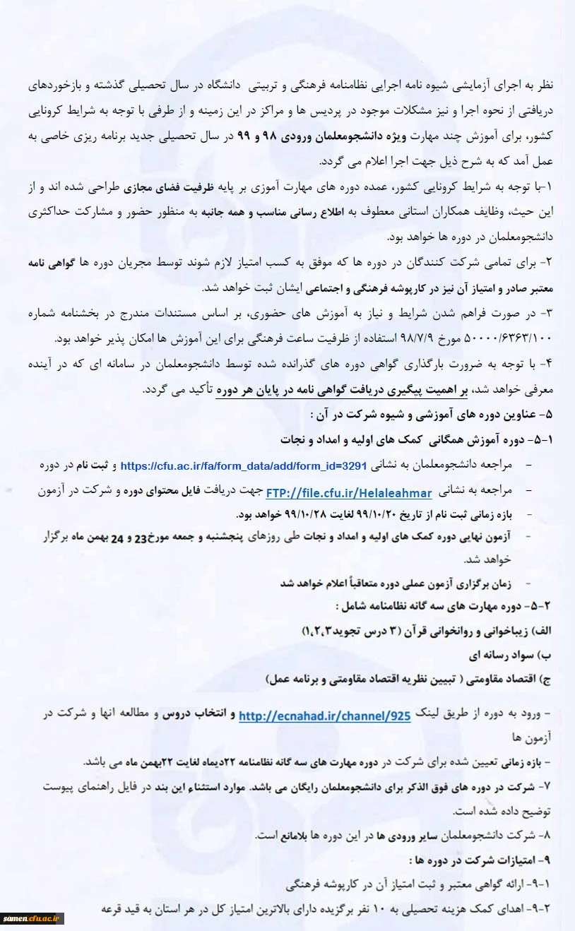 امتیاز دهید : نحوه اجرا و آموزش مهارت های نظامنامه فرهنگی و تربیتی دانشگاه 2 دوشنبه 22 دی 1399 ساعت 20:51