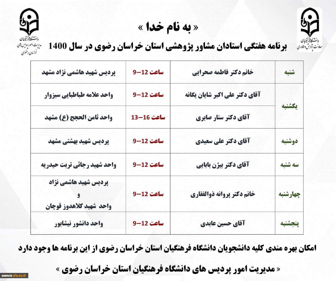 برنامه اجرایی استادان مشاور پژوهشی استان 3
