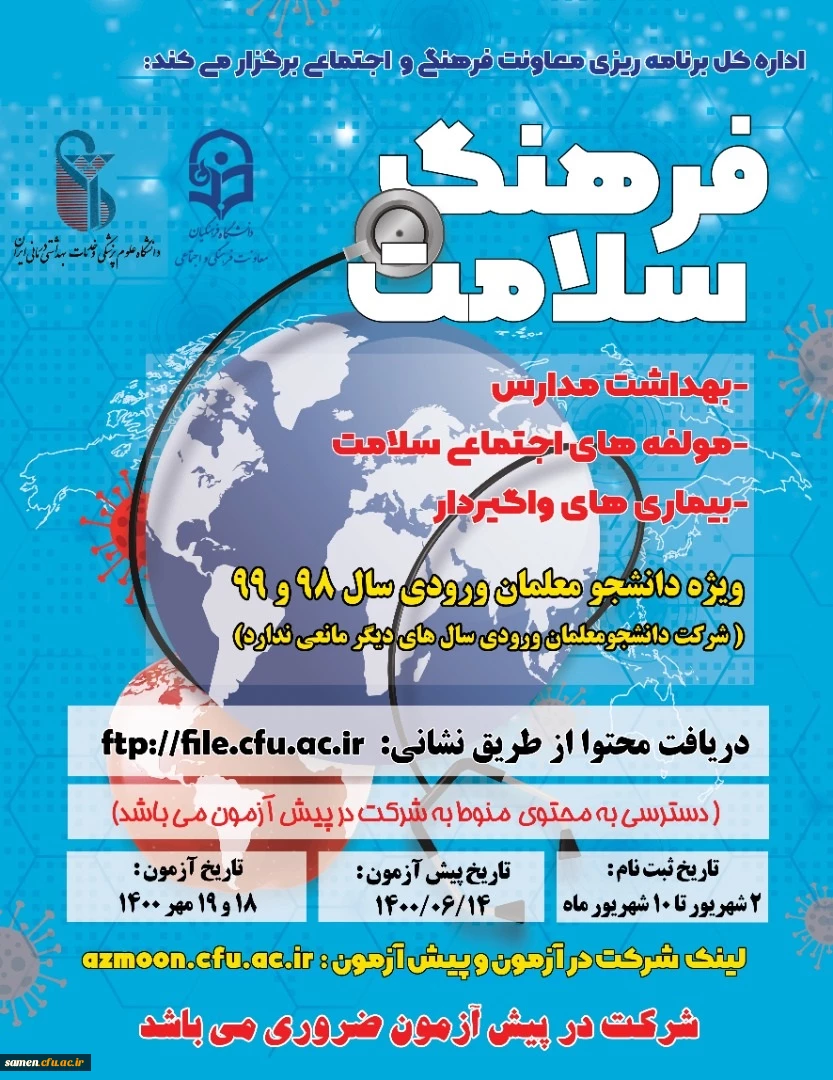 اطلاعیه ثبت نام و آزمون دوره فرهنگ سلامت 3